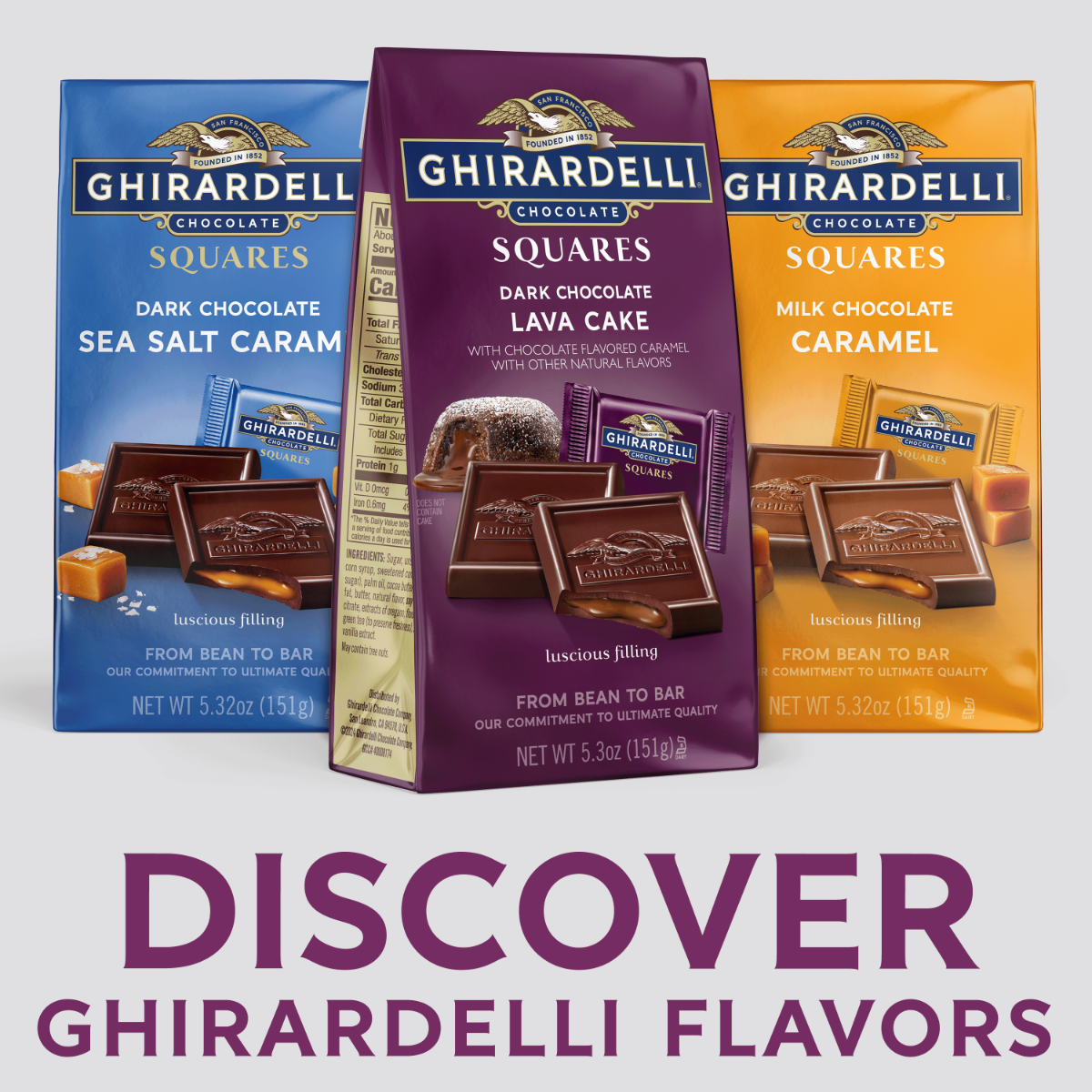 Unwrap GHIRARDELLI Dark Chocolate Lava Cake SQUARES for moments of pure indulgence. GHIRARDELLI SQUARES bring a touch of sweetness to your day, whether savored on their own or paired with your favorite treat. Let each bite of rich, slow-melting dark chocolate and luscious chocolate-flavored caramel filling transport you to dessert heaven. Share the sweet moments of joy and delight with someone close to your heart when you give these chocolate candy SQUARES as a gift. Crafted with premium ingredients, including high-quality cocoa beans, each individually wrapped square is perfect for savoring or sharing. GHIRARDELLI Makes Life a Bite Better.