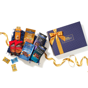 Give someone special the gift of Ghirardelli chocolate with our deliciously indulgent Classic Chocolate Gift Box. Complete with some of our favorite flavors and products – from smooth, buttery Caramel Squares to deliciously dark Hot Cocoa Mix – this gift box is the perfect treat for chocolate lovers. Each premium piece is packaged in a blue and gold box and wrapped with our signature gold ribbon for that extra special touch. You simply can’t go wrong with our exquisite gift boxes.