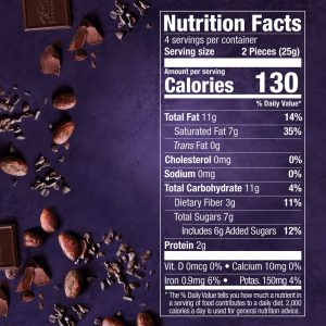 - Rich, intense dark chocolate with a 72% cacao content